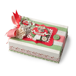 I got the idea for the box while at convention. I just LOVE this Big Shot Bigz L Die! Yes, that's right its in the Holiday mini. And it has the cutest Stocking Accents! This just might be Sage's classmates Christmas box this year.